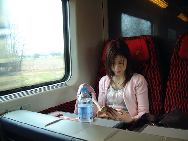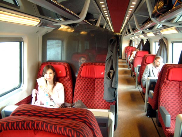 ミラノからフィレンツェにはトレニタリア(TRENITALIA イタリア国鉄が民営化)が誇る特急列車ユーロスターで2時間40分の旅です。ユーロスターというと英仏海峡トンネルを通る列車が有名ですが、イタリアの特急は大半がユーロスターという愛称です。日本で「のぞみ」ドイツで「インターシティ」というように。これは一等車。最近はコンパートメント式は減って、開放型キャビンが主流になっています。