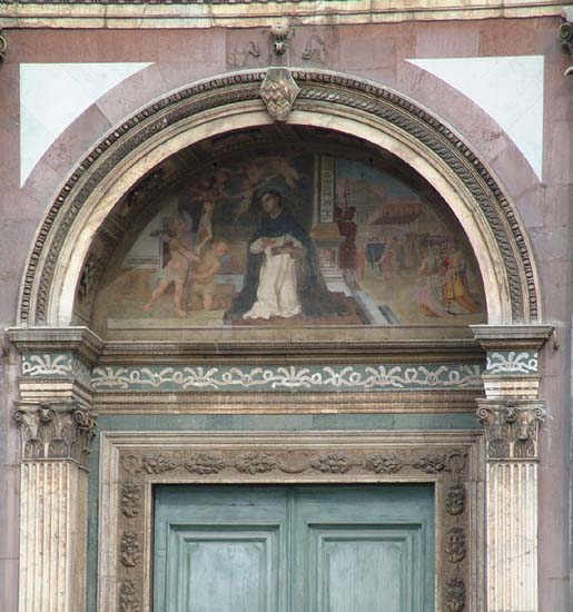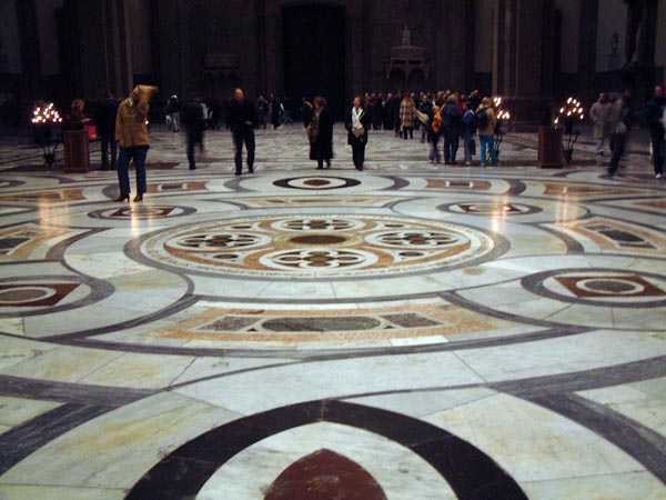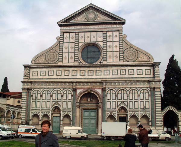 これがサンタ・マリア・ノヴェラ教会。ファサードはイタリア特有、緑と白と赤の大理石で装飾されています。見事なものです。中には有名な画家の宗教画が並んでいます。