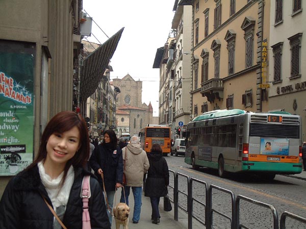 後方にサンタ・マリア・ノヴェラ教会が見えます。駅前から延びる道はこんな狭い道。フィレンツェには地下鉄はおろか、トラムもありません。バスはマイクロバスのような小さなバスも走っています。なにせ道が狭い。イタリアの町は一方通行が多いので大変です。以前ラヴェンナという小さな観光地で、すぐそこに見えている中央広場にどうしても到達出来なかった思い出があります。
