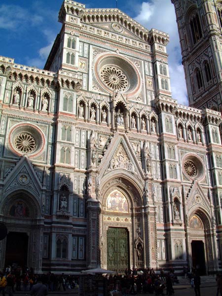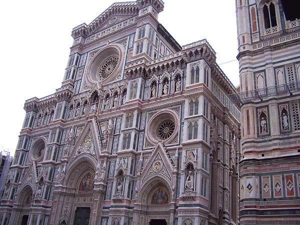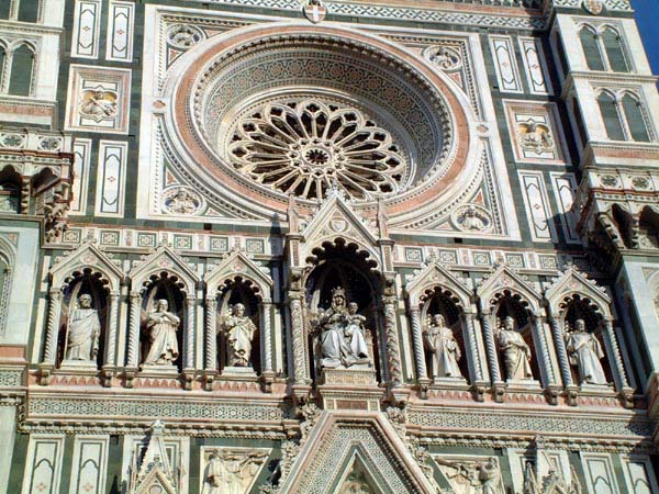 観光ガイドブックを見るとドゥオモのことを、フィレンツェ・ゴシック様式なんて、サラリと流していますが、これは主に装飾様式のことを言っているものでありましょう。ゴシックというのは建築に関する用語です。バロックにはバロック建築と共にバロック音楽、バロック絵画というのがありますが、ゴシック音楽、ゴシック絵画というのは聞いたことがありません。(フォントのゴシックはこの際無視します) ゴシックは建築技術としてのゴシック建築と、建物の装飾様式としてのゴシック様式というのがあります。