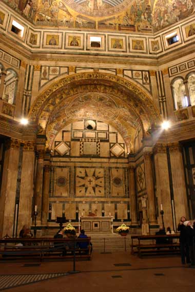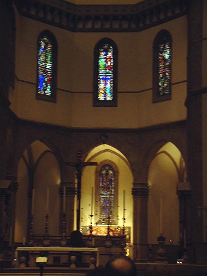 フィレンツェのドゥオモ内部、ここは内陣の祭壇です。窓は小さく、暗い。