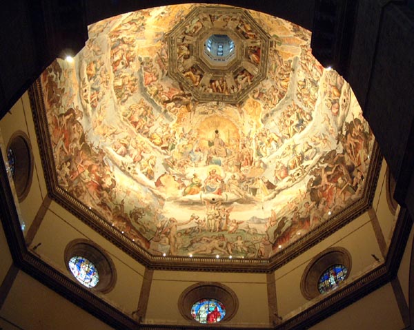 そして巨大な丸天井の内側に描かれた、聖書の物語。この丸天井はどう見てもゴシック的ではありません。ルネサンス的というのかな?