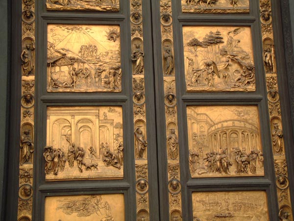 これはミケランジェロが「天国の門」と絶賛した、黄金レリーフ細工の門。