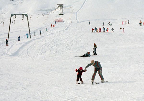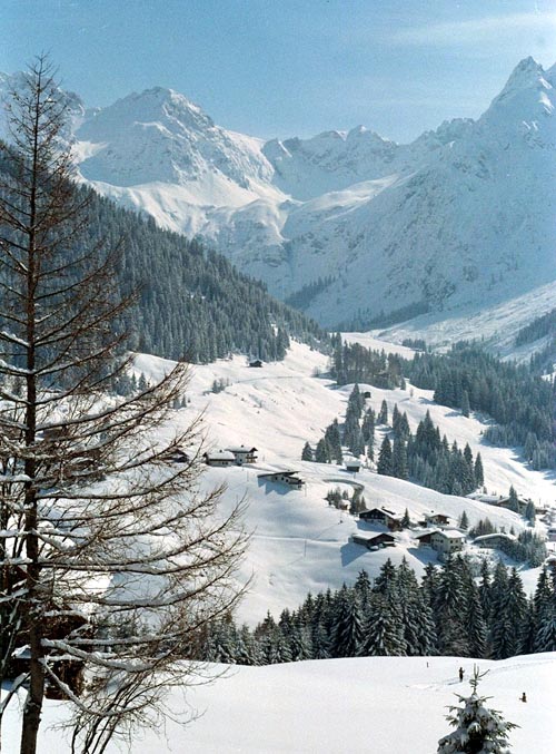 実はオーストリア領なのですが、上の図を見てもわかるように地理的にはドイツに結びついていて、オーストリアの他の地方から直接ここに来る道はありません。クラインヴァルザー谷に入る前に国境がありますが、それは名ばかりで、福岡県から佐賀県に行くようなものでした。通貨がユーロに統一される前はここでの通貨はオーストリア・シリングではなく、ドイツ・マルクでした。ここにスキーに行く利点は少しだけ物価が安いことでした。でもユーロに統一された今、その利点はまだあるのでしょうか?