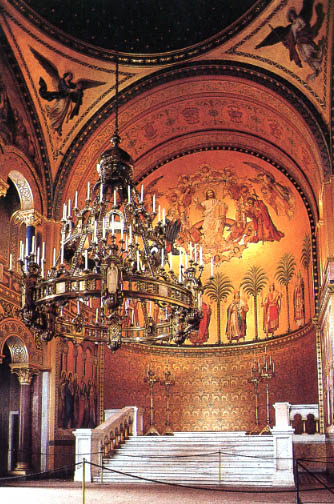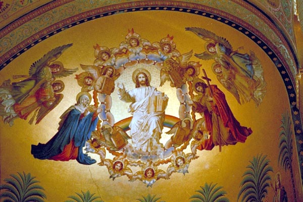 王座の壇の半球形の天井には、キリストを中心にした聖人や天使たちが