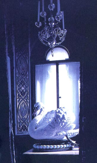 白鳥の置物。実際の白鳥は結構気が荒くて、攻撃的なんですよ。近づくと危ない。