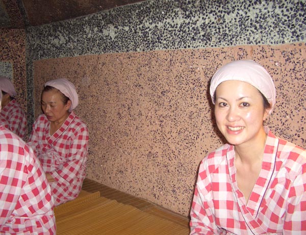 黄土の壁から放出される遠赤外線で汗びっしょりになります。