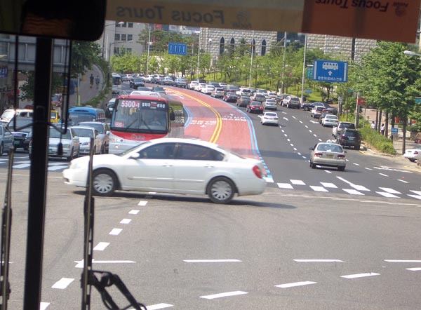 ソウル市内 バスレーンが道路の中央にあります。