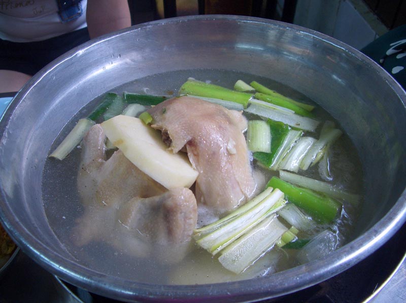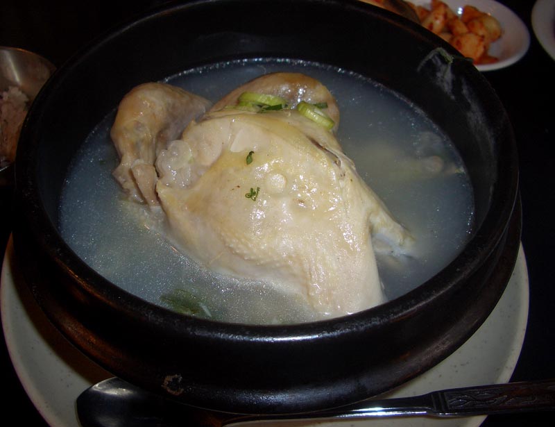 生後1、2ヶ月の若鶏のお腹にもち米、高麗人参、栗、ナツメ、ギンナンが入っています。