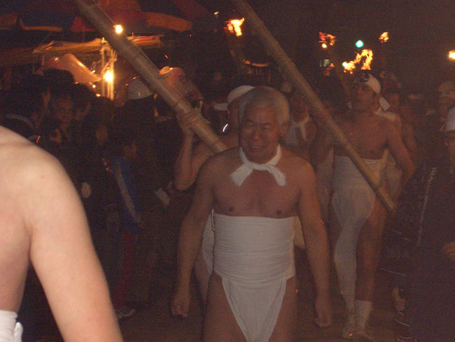 参道を進む氏子さんたちの格好。この日を待ってましたと言わんばかりのおじさん。