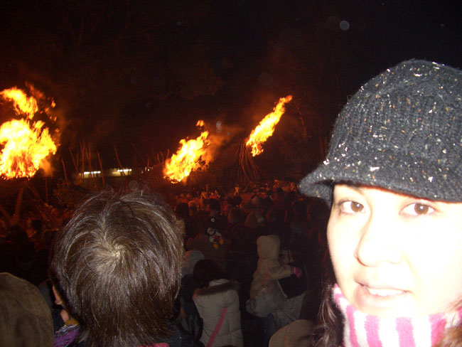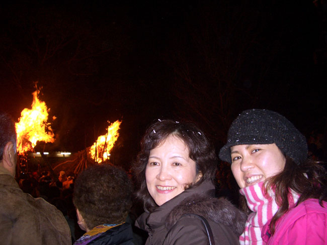 松明が前を通ると暖かい。とたんに周囲の空気が勢いを呼び、明るく輝きます。