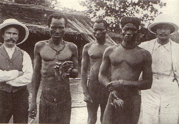 写真に掲げた書籍のタイトルにある「闇」とは、ベルギー国王(ベルギー政府ではない)がコンゴで採取される天然ゴムで巨万の富を得るために、そこに住む人々へ搾取と残虐の限りを尽くしたことを指す。ベルギー国王の私兵は黒人達を鎖につなぎ、不自由な姿で作業を強いた。残虐の一例が写真に見られる。彼らは黒人が抵抗すると、容赦なく右手首を切り落とした。そのうち彼らの抵抗の芽を摘むため、子供の右手首を切り落とすようになった。切り落とした手首は、黒人の人口を把握するのに役立てた。