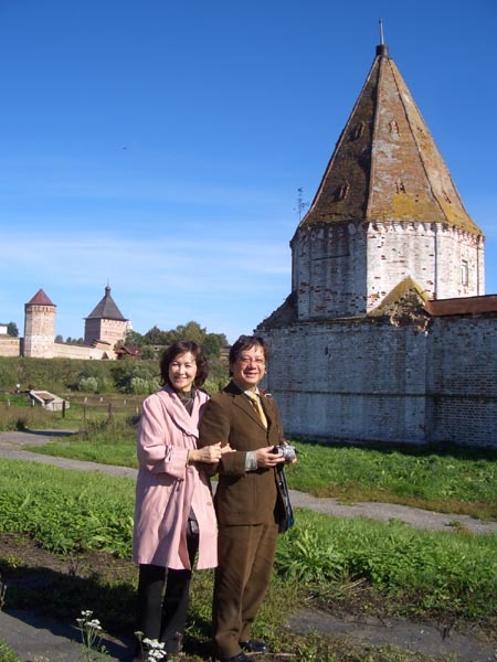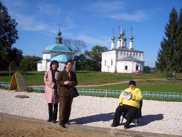 モスクワ北方観光旅行の定番地。ひなびた昔を残すロシア。このおばさんもウェスト50cmの、愛らしい少女