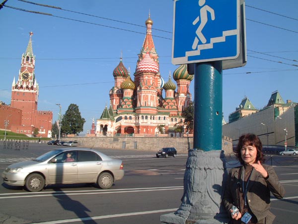 さて、モスクワに戻って、あちらに見えるのが「赤の広場」の聖ワシーリィ寺院。地下道を通って行きます。