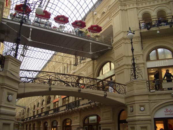 グムデパートは外観だけでなく、内部も立派です。日本のデパートと違って、独立した専門店の集合体。ソ連