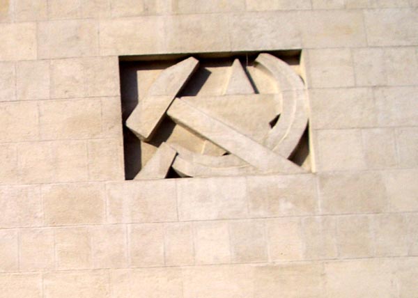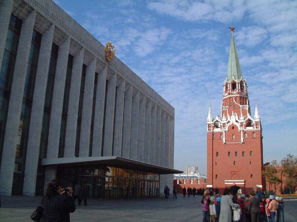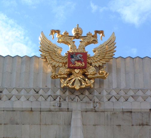 大会宮殿入り口の上に輝くのは新生ロシアの国章。これはちょっと呆れたな。ほとんど帝政ロシア時代の国章で