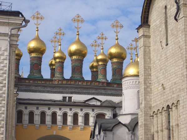 クレムリン宮殿の屋根の上には金色の尖塔がずらり。なかなか壮観だ。