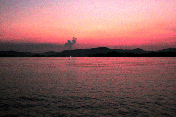 平戸海峡の夜明け。平戸側から九州(東側)を見る。