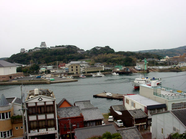 平戸港は狭い。近くの島を往復するフェリーも接岸に苦労していた。