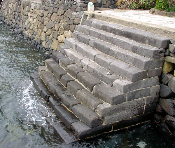 沖合いに碇泊している南蛮船から小舟に移し替えられた積荷はこの桟橋におろされた。