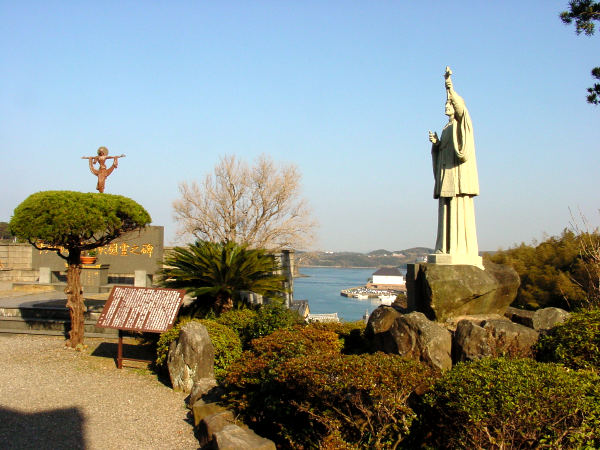 平戸殉教者顕彰慰霊之碑。右にフランシスコ・ザビエル像