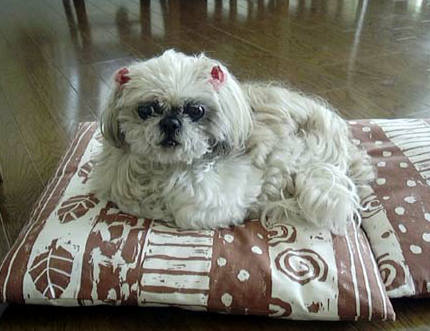016:いつもこのようにクッションの上で寛ぐのが大好き