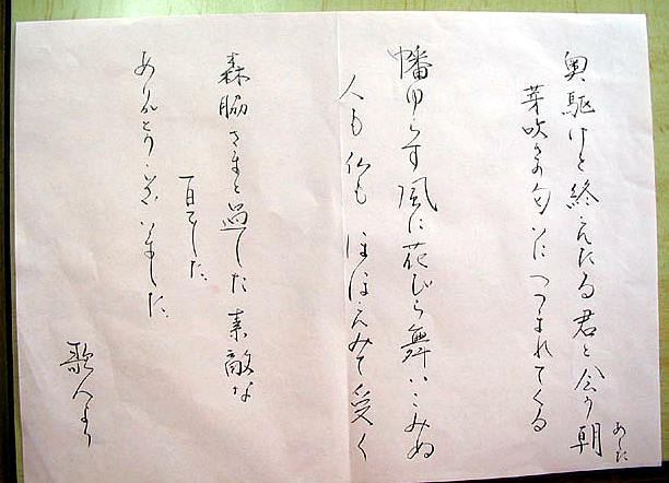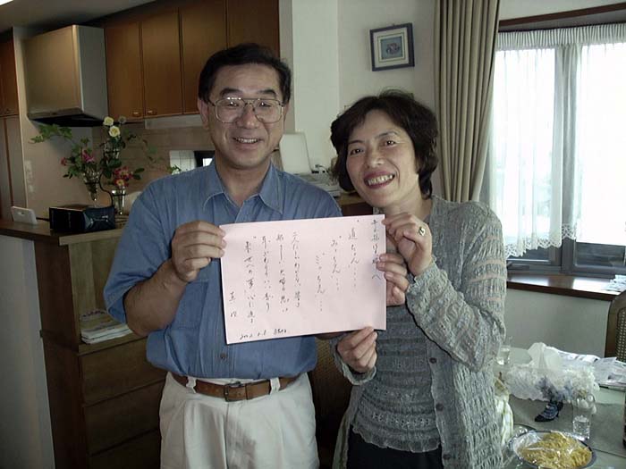 真理さんも手打ち庵、歌華人に詩のプレゼント。