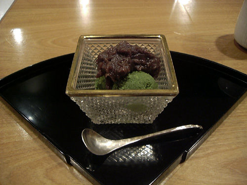 デザートは小倉餡たっぷりの抹茶のシャーベット