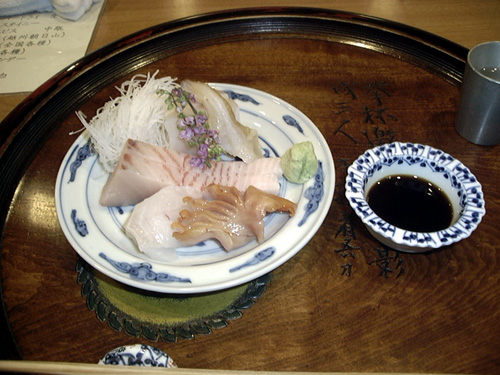 お造りは瀬戸内の魚介類、鮑、貝柱、赤貝等
