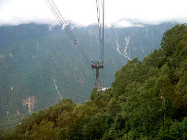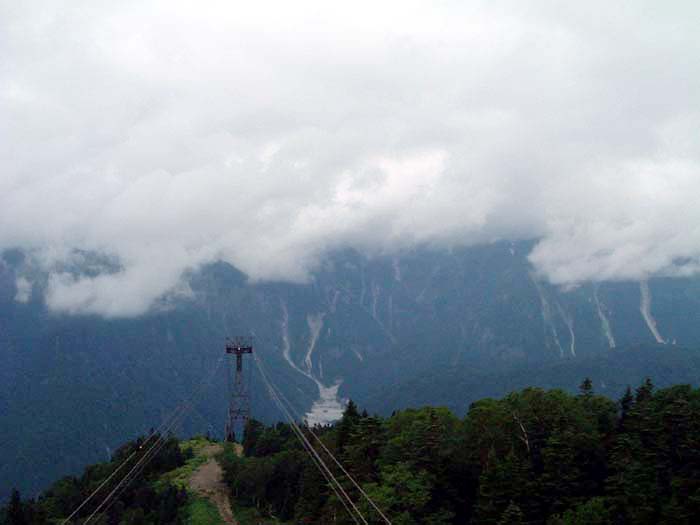 下りのロープウエーからも正面に笠ヶ岳の雄大な姿を見ることができます。