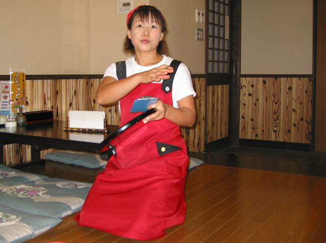 まず、向かった先は「曳山展示館」。ここで、最初に「おわら」の踊り方の勉強。