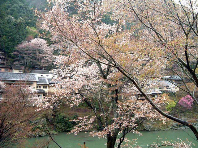 列車から観る嵐山の桜は今がベスト。