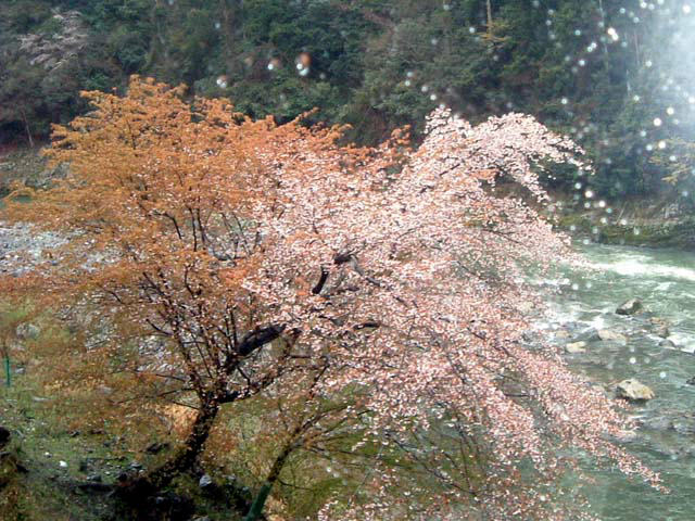 ソメイヨシノより山桜が多いようです。