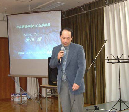 内容は、和歌山の診療所のお医者さん「やぶさん」こと安川修医学博士のトーク。題して「田舎医者のあたふた