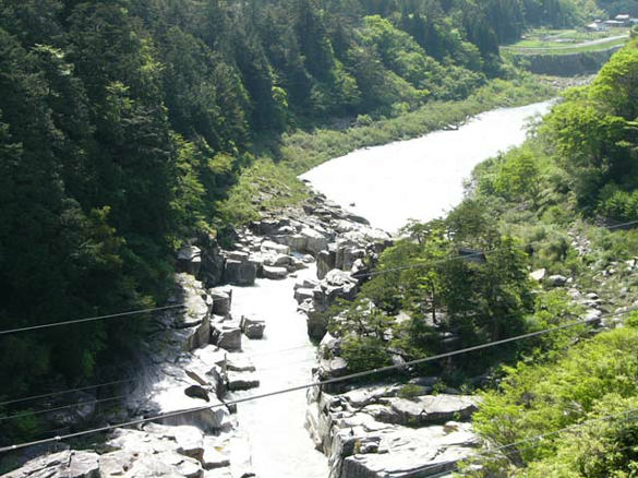 向かった先は、浦島伝説が残る「寝覚ノ床」。木曽川の急流と奇岩の景観を眼下に