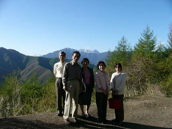 夕刻の逆光線に映える神々しいばかりの乗鞍岳に皆、しばし見とれていました。