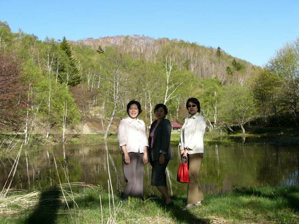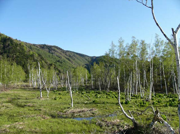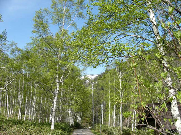 この白樺峠には美しい泉もあり、水芭蕉が咲いていました。
