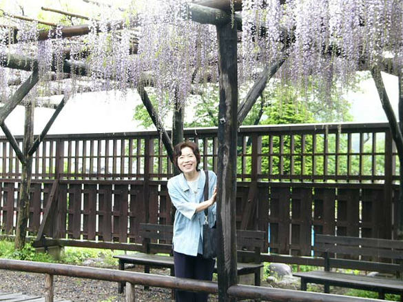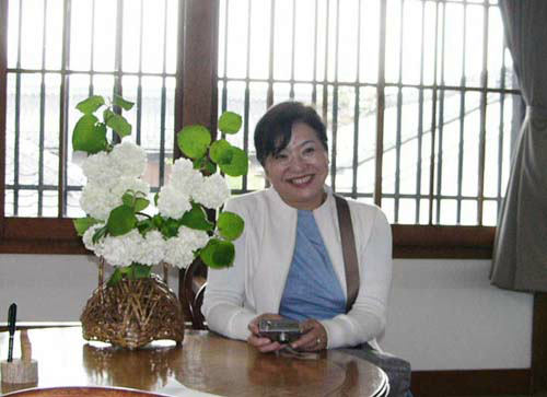 美術館のコーナーでアジサイとなにやら嬉しそうならんらん。
