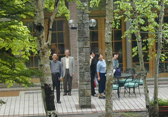 赤松や白樺、それに雨に洗われて瑞々しい苔が見事なまでに美しい。