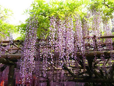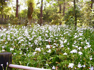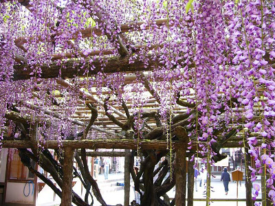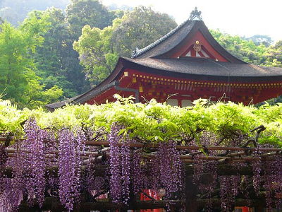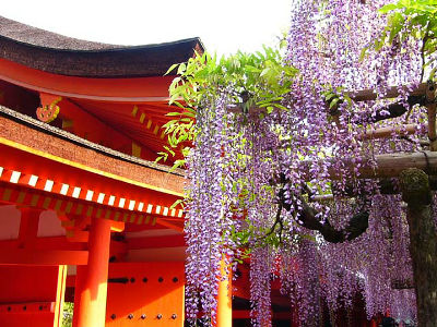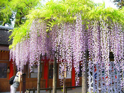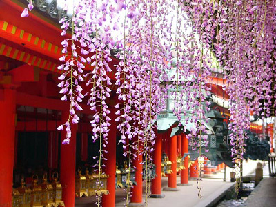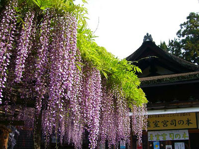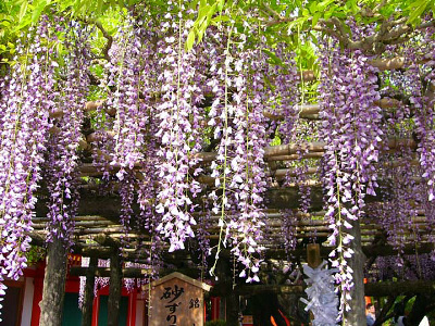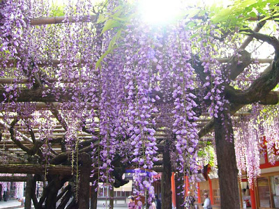 5/6 2005 掲載 季節は最早、初夏を通りすぎて、真夏かと思わせる暑さです。 奈良は春日大社の砂ずりの藤早朝散歩で行って来ました 春日山の原生林を渡る鳥の声と 横笛の音、木漏れ日の小道に清清しい心地でした・・・・・手打ち庵