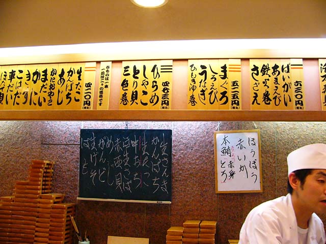 漸く、カウンターに座って、さて何を注文するか。関西や博多では食べられないネタが沢山。
