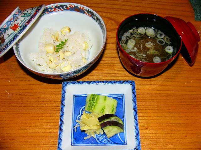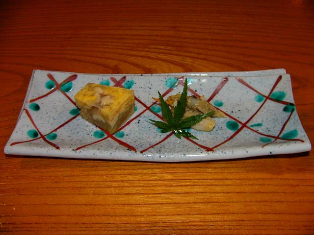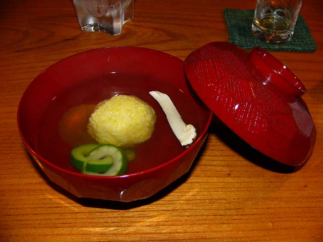 恵比寿(寒天の卵寄せ)(011)や太い加賀きゅうりと松茸の吸い物(014)