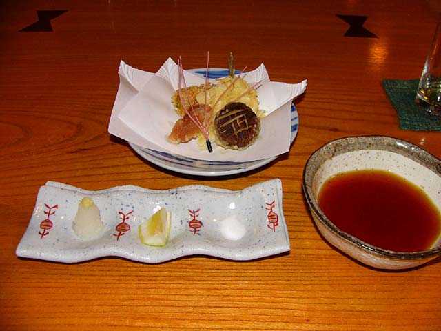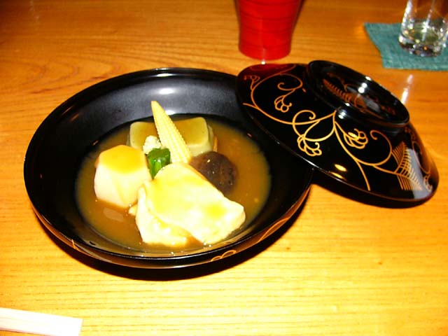 そして治部煮(016)など独特の加賀料理を久谷焼きの器に盛り付けてあります。