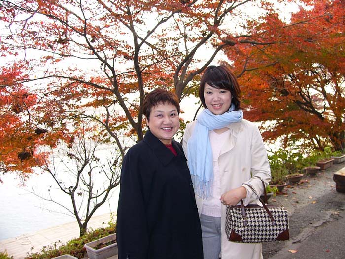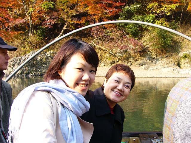 保津川下りの乗船場に着きます。舟に乗る前のはなママさん母娘。