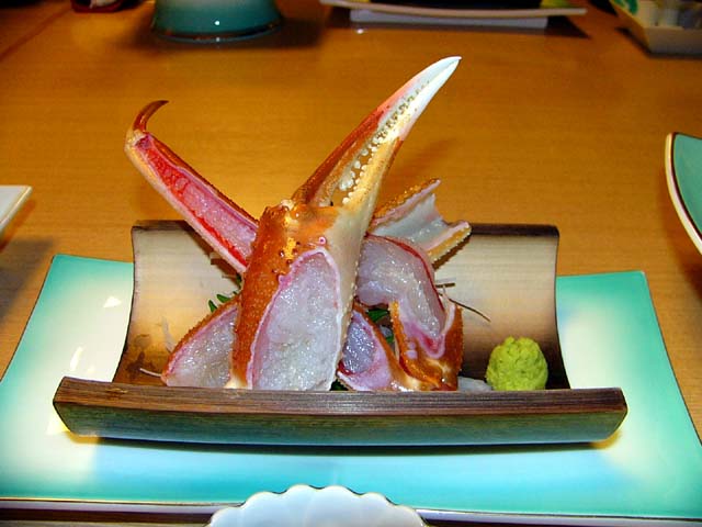 さて、いよいよ、蟹です。まずは刺身。蟹そのものの甘みがなんともいえません。
