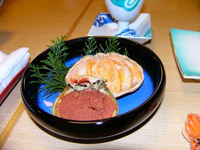 あまり蟹ばかりでは飽きるので、鮑や甘エビなどの日本海の海の幸を箸休めに。