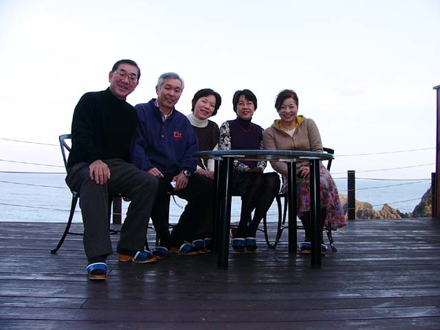 よく朝、目が覚めると、空は快晴、海は穏やか。部屋のデッキで記念撮影です。