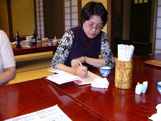 蕎麦が来るまで、日誌に記帳しています。もちろん「修猷館」と書いておきました。