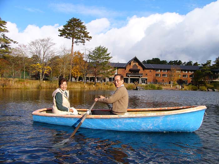 腹ごなしに弥六沼でボートに乗りました。 こんなカップルでボートに乗るのは何十年振りでしょうか。