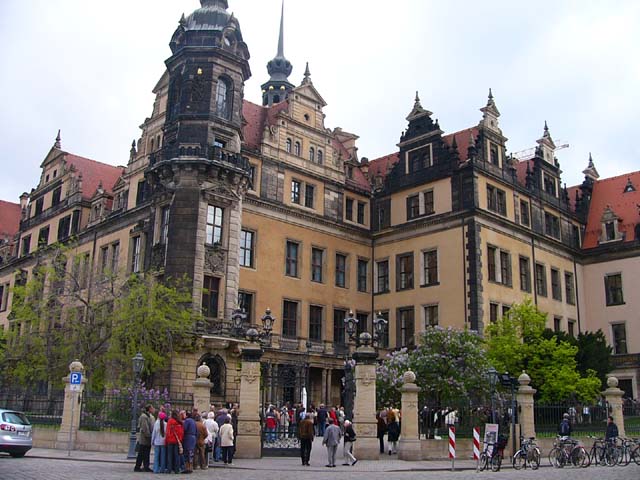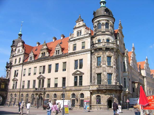 ここは、広場テアータープラッツの東側にある宮殿レジデンツシュロスです。1530年の起工で、1960年代に改装され